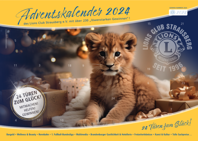 Liebe Freundinnen und Freunde des Lions Clubs Strausberg, es ist wieder soweit! Die Vorweihnachtszeit nähert sich mit großen Schritten, und wir freuen uns sehr, Ihnen unseren diesjährigen Lions Adventskalender 2024 präsentieren zu dürfen. Was ist der Lions Adventskalender? Unser Adventskalender ist mehr als nur ein Weg, die Tage bis Weihnachten zu zählen. Hinter jedem…