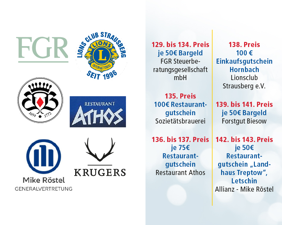 2605 – Allianz Mike Röstel – Landhaus Treptow Letschin Restaurantgutschein – 50,00 EUR – Preis-Nr. 142