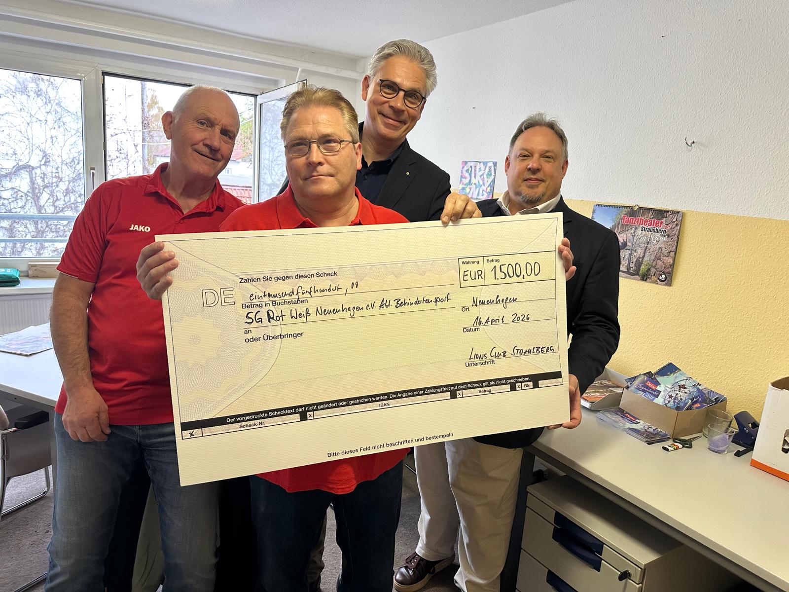 Am 16. April 2026 hat der Lions Club Strausberg eine Spende in Höhe von 1.500 € an die Abteilung Behindertensport der SG Rot Weiß Neuenhagen übergeben.